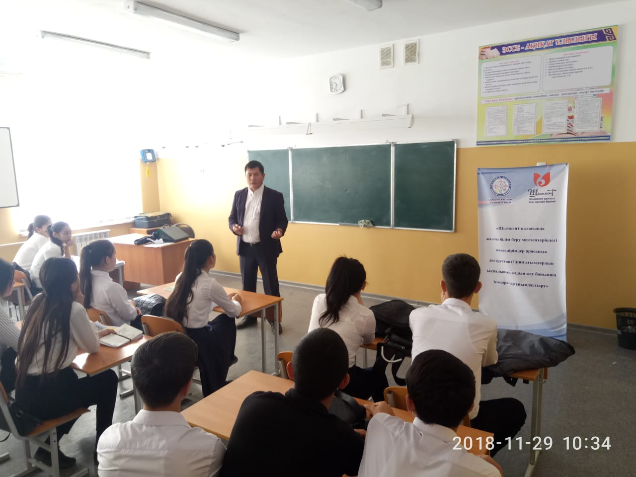 Мақсат, дін саласындағы тұрақтылық мәселелері бойынша Шымкент қаласында жалпы білім беру мектептерінде жасөспірімдер арасында деструктивті діни ағымдардың ықпалының алдын алу бойынша іс-шаралар ұйымдастыру жобасы аясында мектеп оқушыларымен кездесу өткізу.
