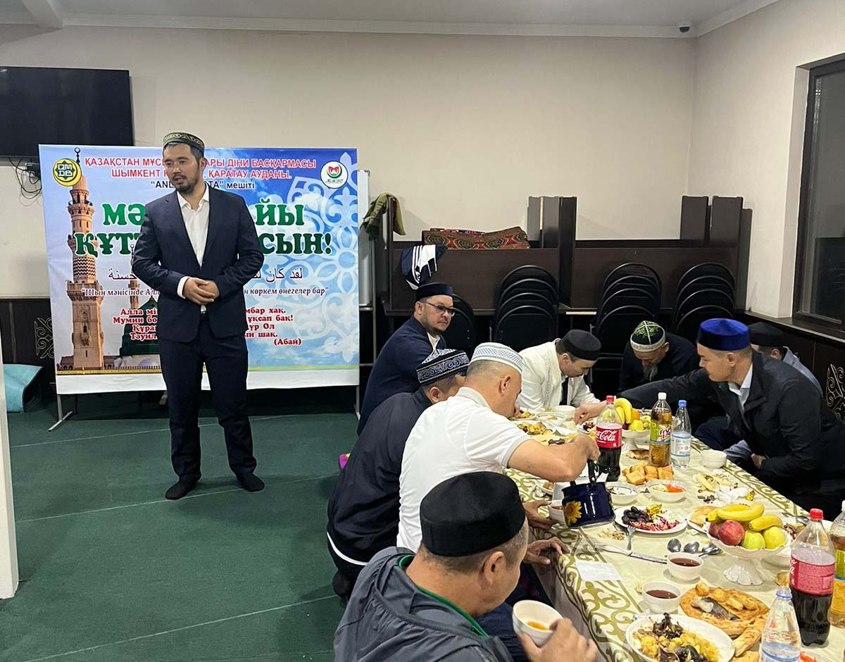 Шымкент қаласы Қаратау ауданы “Аңламас ата” мешітінің ұйымдастыруымен Мәулід түні келуіне орай Мәулід дастарханы жайылып жамағаттың басын қостық Қонақта: Орталық Ақ мешітінің найб имамы Мұхаммеджан имам келіп қаламыздың бас имамы Бақдаулет қажы Нұрматұлының сәлемін жеткізіп әсерлі уағызын айтты. Ордабасы мешітінің найб имамы, Мейірбек Қариымыз Мәулід қасидасын оқып көңілімізді қуантты. Қаратау ауданының бас имамы Дастан имам Мәулідтің діндегі әрі ақидадағы орнын көрсетіп үлкен ілім қалдырды. Абдуссаттар мешітінің ұстазы Данабек имам Пайғамбарға деген махаббаттың қандай болатынын түсіндірді. Мәулід мерекемізді керемет етіп өткізіп берген ұстаздарымызға Алла разы болсын мешітіміздің әрі ұжымымыздың атынан үлкен алғыс айтамыз!